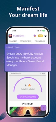 The app is built on the science and practice of the law of attraction, helping you attract what you desire most. From daily entries in your manifestation journal to guided exercises for creating a strong mindset, the app is your ultimate manifestation tool.