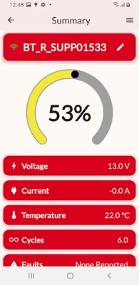 Use the Rolls LFP Connect app to read the following information from your R-Series & S-Series drop-in LFP (LiFePO4) battery: